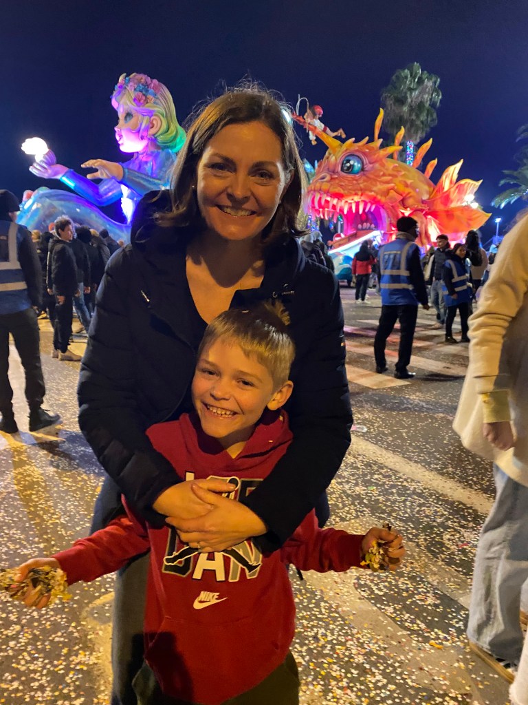 After our crêpe party, we took off with Betsy and her son Thomas for the Carnival. Nice hosts the biggest and most beautiful Mardi Gras celebration in France, and we were excited to see it!