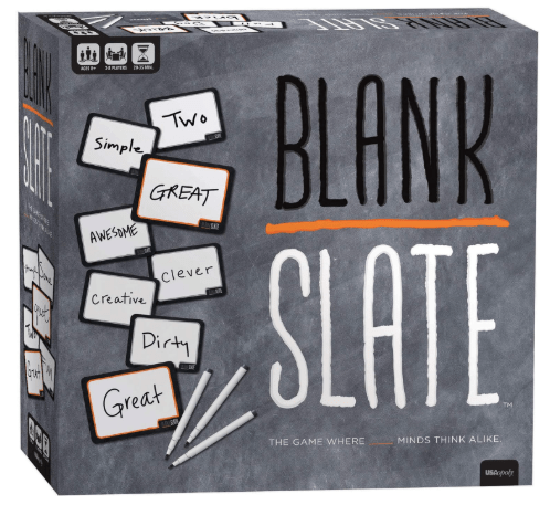This is a great, easy game for a group of up to 8 people. You technically could play it with more people, you’d just have to supply more little white boards and keep score on paper instead of the provided board. The object of this game is simple – a card is drawn with a word on it and then either a blank space before or after the word. For example, ” ______ ball.” Then each player writes on their white board what word they think should fill the blank, like “basket, base, soft, etc.” Your goal is to match up with just 1 other person. If you do that, you each get 3 points. If you match up with more than 1 other person, you each get 1 point. And if you don’t match with anyone, you get 0 points. It’s a fun, easy game to pull out when you don’t want to have to strategize too hard or spend a lot of time explaining directions.
